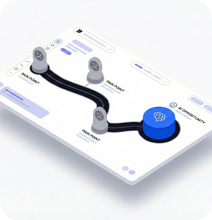 On identifie les endroits où l'IA va vraiment transformer l'expérience utilisateur et générer du ROI.